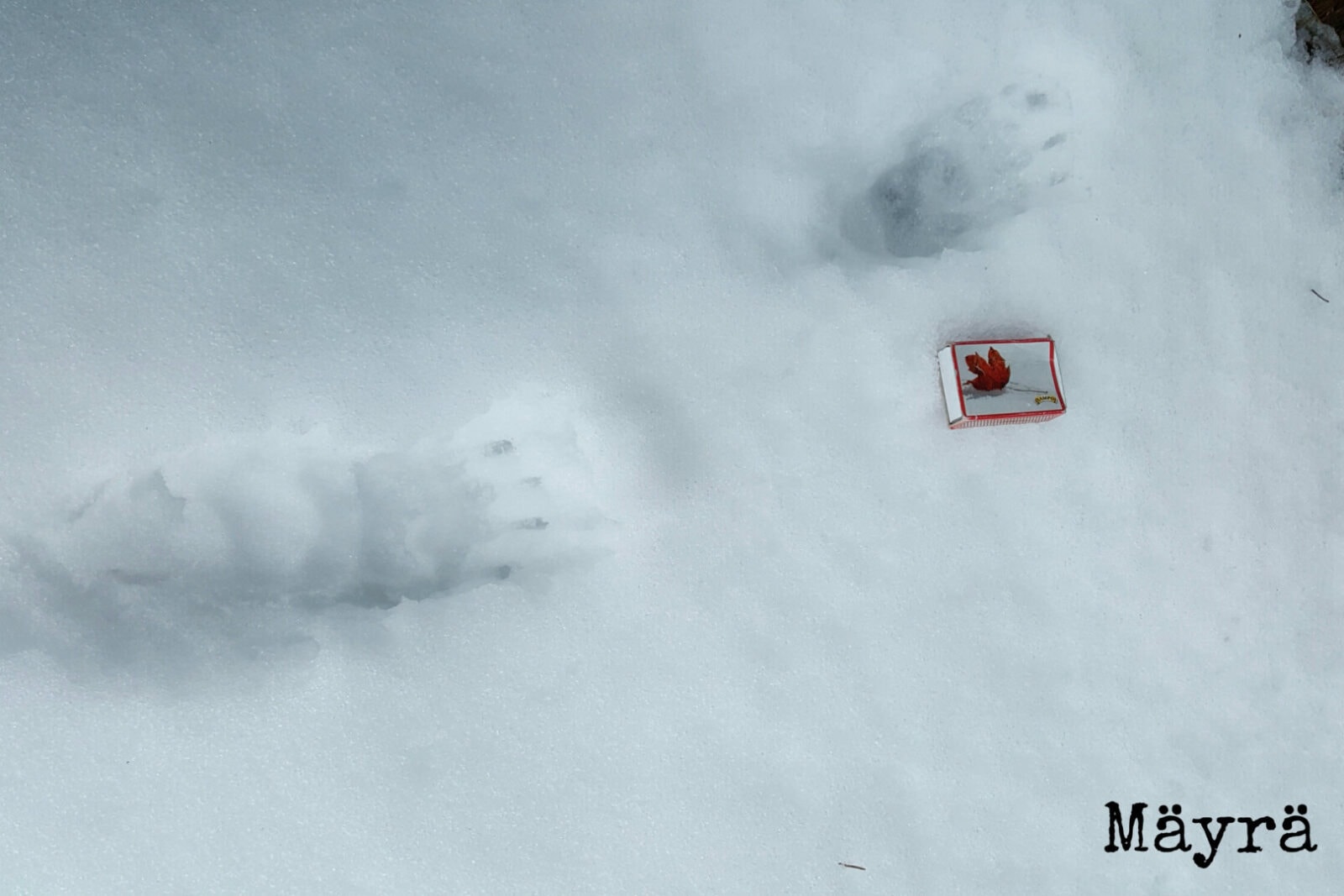 Tänä keväänä myös mäyrä näyttää heränneen talviunilta hieman etuajassa ja liikkuu aktiivisesti. Tassunjälki on melko helposti tunnistettava. Mäyrällä on viisi varvasta ja jälki näyttää pienen karhun jäljeltä. Mäyrät liikkuvat yleensä auringon laskun jälkeen ja pysyttelevät mieluiten metsässä.