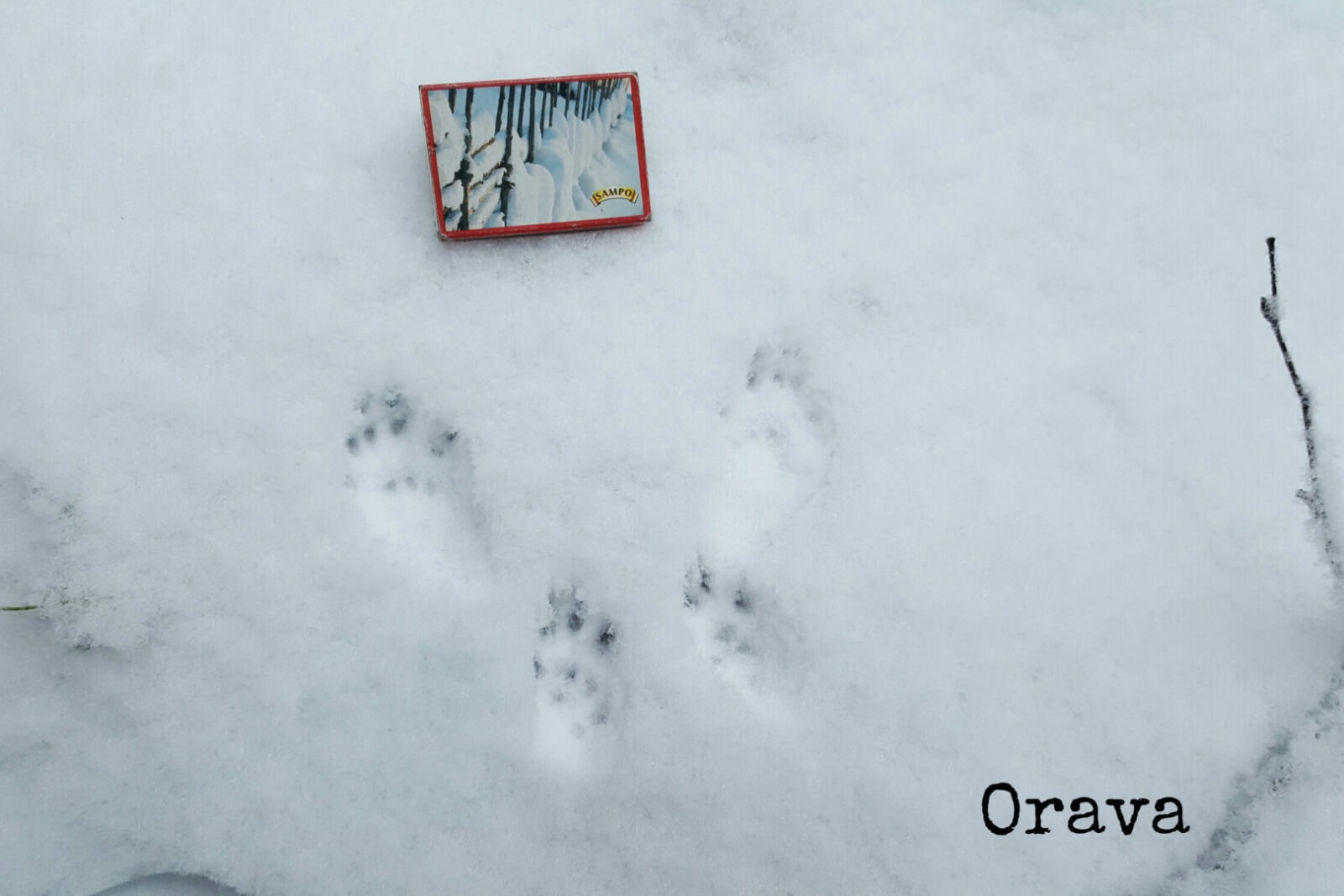 Kolmanneksi yleisin jälkien jättäjä on orava. Oravan jälki on hyvin helppo tunnistaa, sillä jälki kulkee puun juurelta ja toisen puun juurelle. Takakäpälän jälki on noin 6 cm ja etukäpälä noin puolet siitä.
