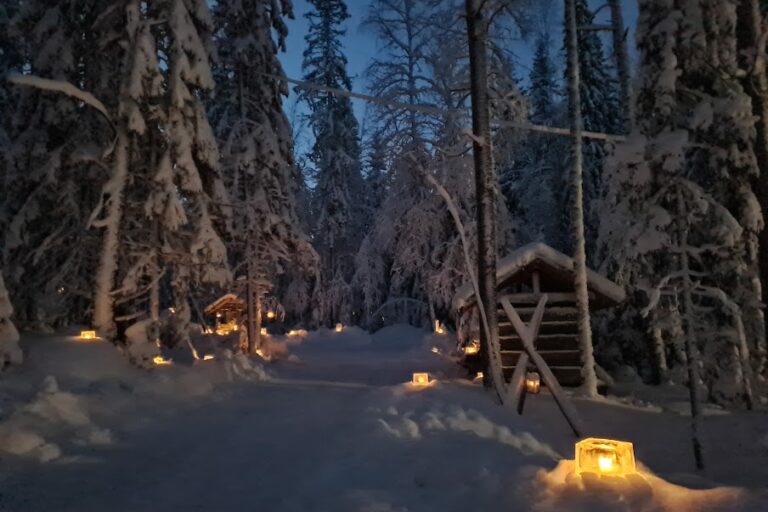 Haukkamäki loistaa tähtitaivaan alla kymmenien lumi-, ja jäälyhtyjen sekä nuotiotulen loimussa. Metsäravintolassamme Chef Jouni Ukkonen valmistaa legendaarisia hirviburgereitaan.