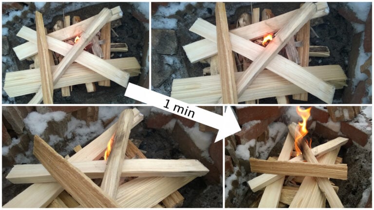 Nuotion sytyttämisen pikaohje: Pilkkeet + sytykkeet + oikea ladonta = helppo nuotion sytytys